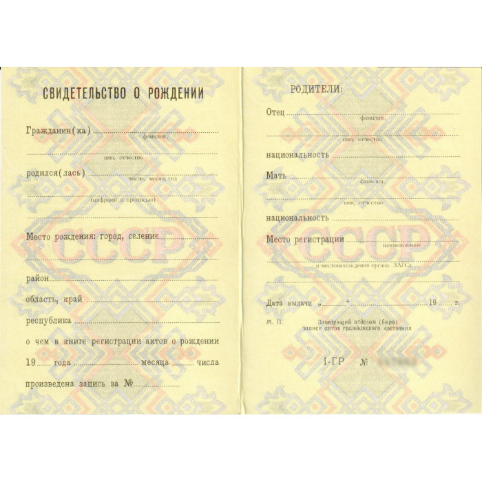 Свидетельство о рождении РСФСР 1990-1993